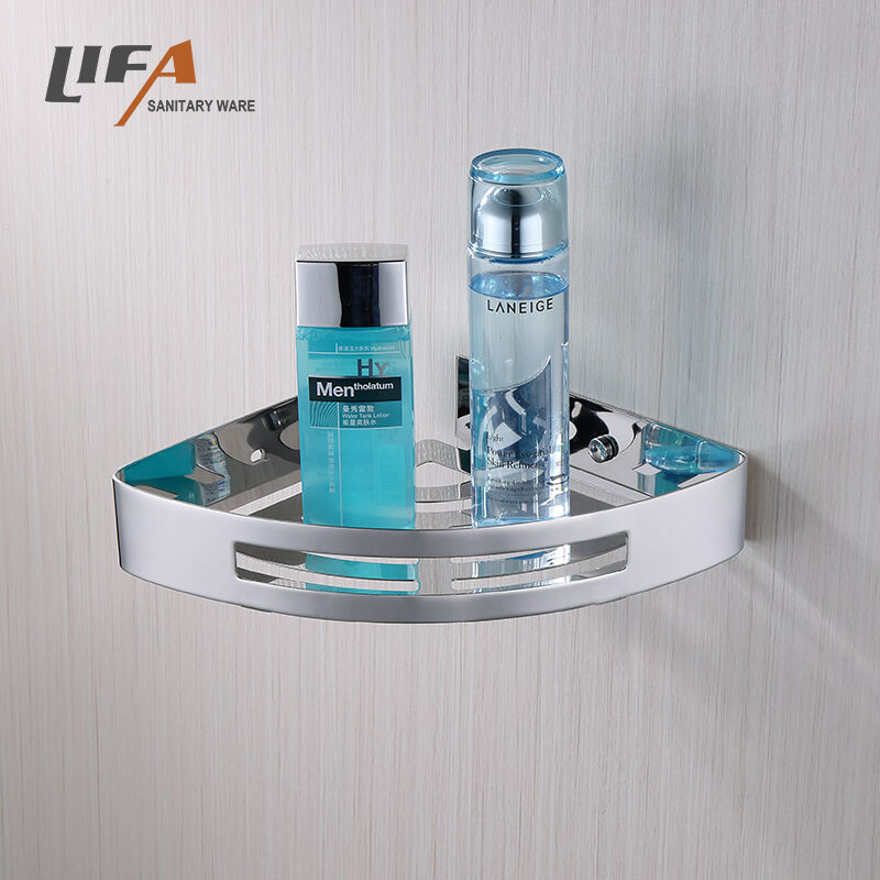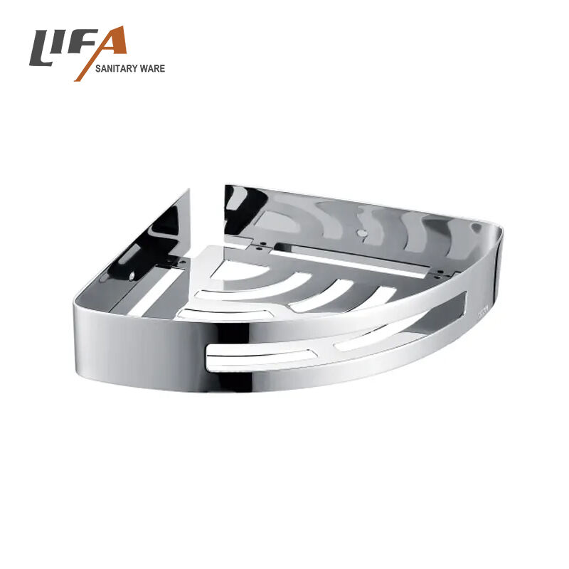 Modelo B1003 Nombre del producto Estante de esquina de baño Material Acero inoxidable Color Plata Tamaño 220x220x45 mm Superficie Proceso de acabado de cromado Instalación Tipo de colgante en la pared