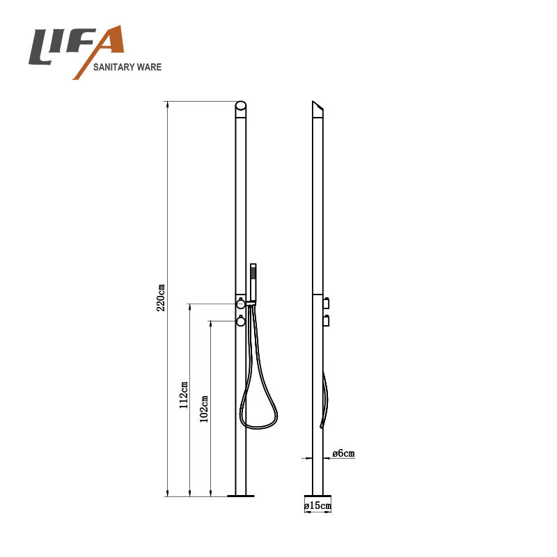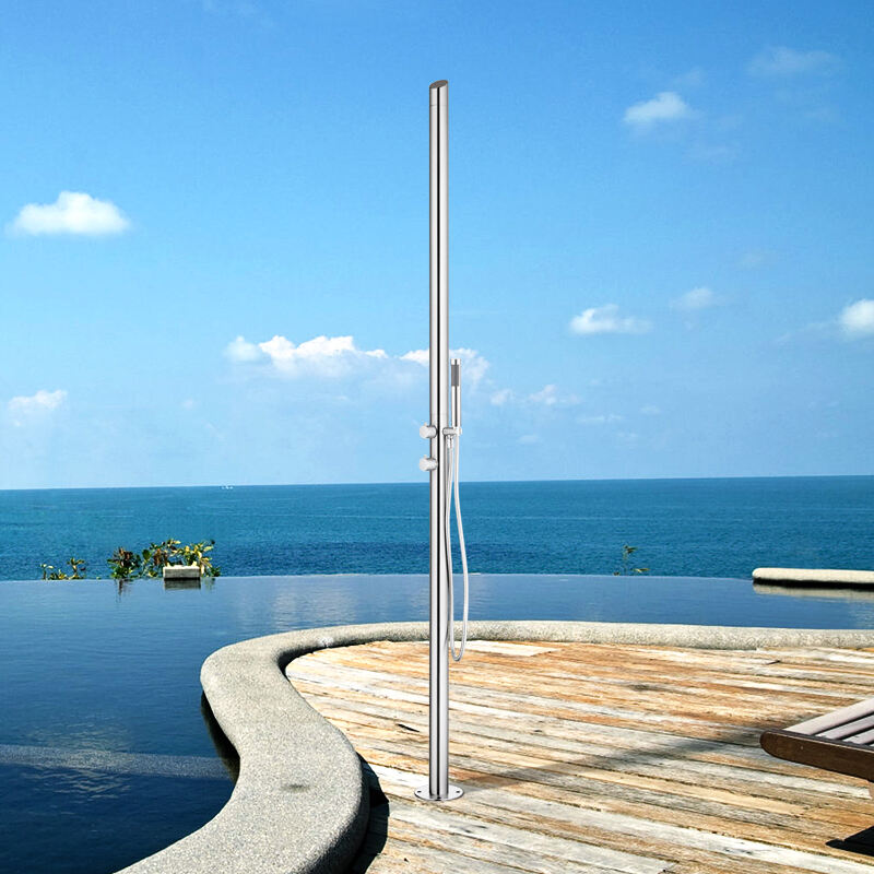 Panel de Ducha Multifuncional de Lluvia de Cascada de Acero Inoxidable de Alta Calidad para Exterior en la Playa CF-5302Nombre del ProductoColumna de ducha exterior SSNúmero de ModeloCF-5302Tamañoφ60*2200mmMaterialAcero inoxidableFunciónDuchaCaracterísticaGrifos de pieAplicaciónBaño, piscina exteriorEstilo de DiseñoModernoGarantía2 años