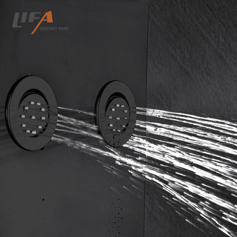 Nuevo diseño de sistema de ducha de esquina de aleación de aluminio negro, popular panel de ducha decorativo CF-9037