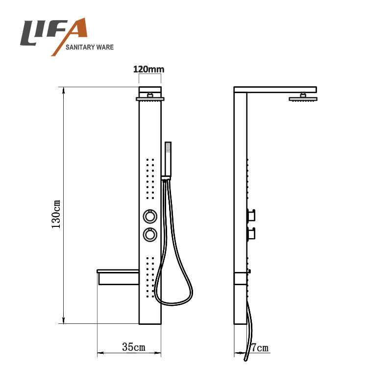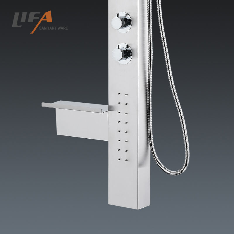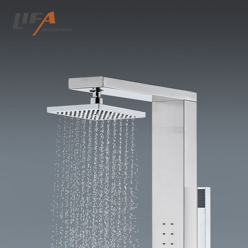 Everyday honeymoon bathroom mixer faucet accessories stainless steel shower panel CF-8331B MaterialStainless steel shower panelHead showerPlastic head shower, rainfallHand showerSingle function chrome plastic hand showerShower holderChrome finished, plastic shower holderMassage jetsChrome finished, plastic massage jetsCartridgeBrass body ceramic plate LIFE: 500000 timesHandlesOne for diverter, one for mixer, chrome zincWoven hose304# stainless steel wire woven hoseShower hoseStainless steel double-lock hose, 1.5MMounting kitsStainless steel hanging pieces