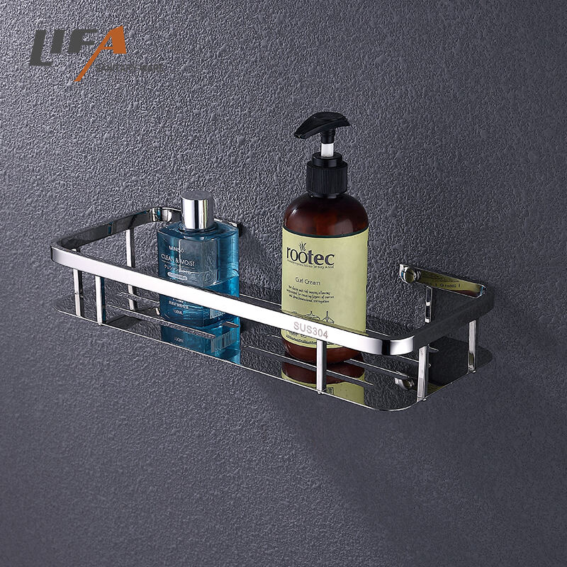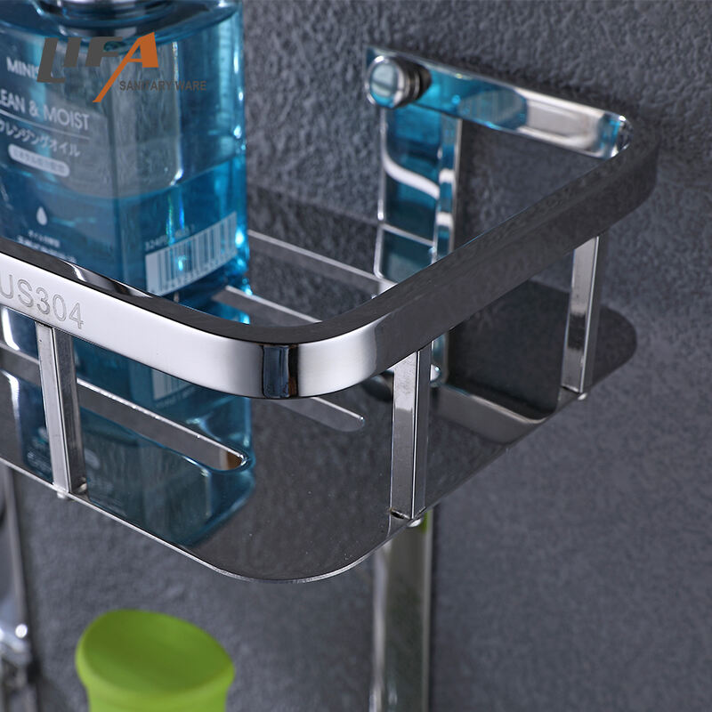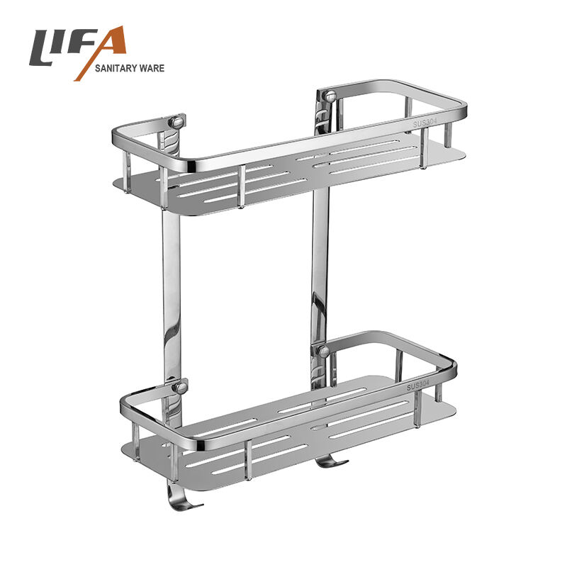 Modèle D1002 Nom du produit Étagère de salle de bain Matériau Acier inoxydable Couleur Argent Taille 320x135x50mm Finition de surface Processus de placage au chrome Installation Type suspendu au mur