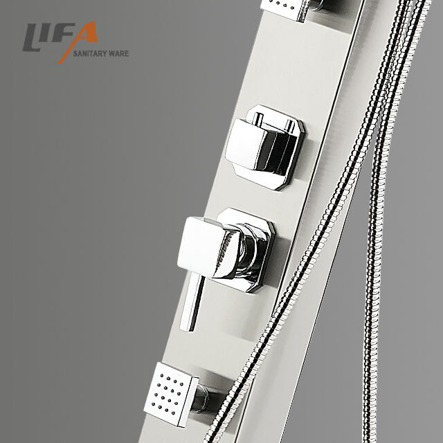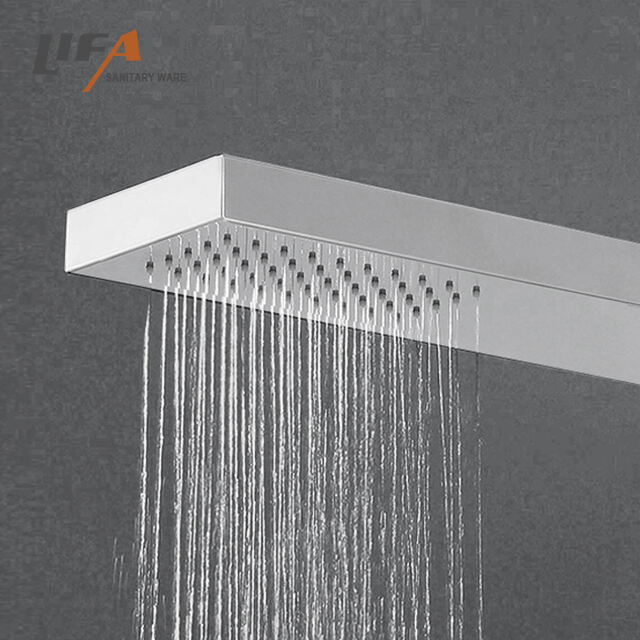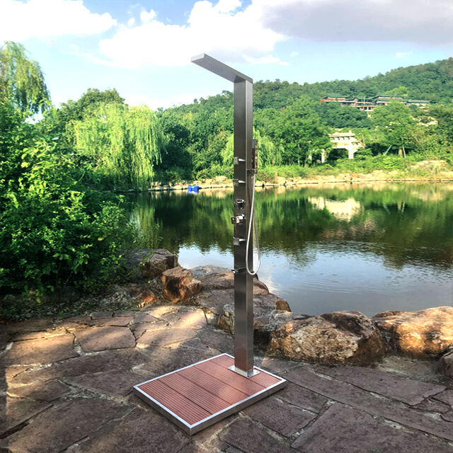 High quality 304 stainless steel outdoor shower column shower panel for garden beach CF-5017 ItemValueProduct NameSS outdoor shower panelModel NumberCF-5017Size120*65*2100mmMaterialStainless steelFunctionShowerFeatureFloor Stand FaucetsApplicationBathroom, outdoor poolDesign StyleModernWarranty2 year