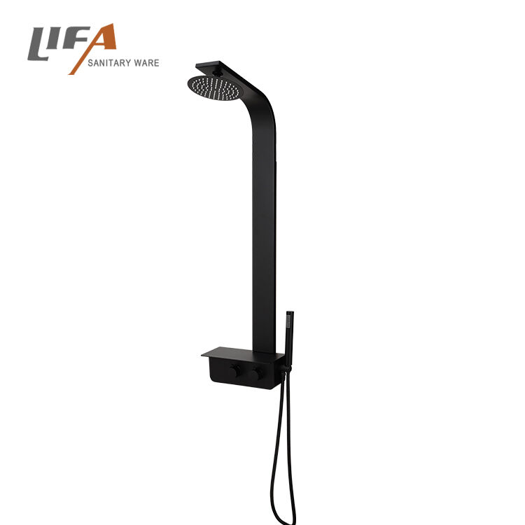 Product NameAluminum alloy shower panelModel NumberCF-3206MaterialAluminum alloyHead showerStainless steel head shower, rainfall Hand showerSingle function plastic hand showerShelfSoap or shampoo shelfWarranty2 year