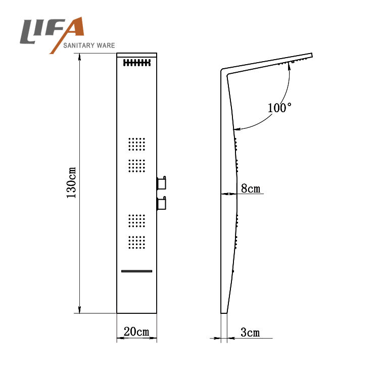 Product NameAluminum alloy shower panelModel NumberCF-9054Size1300*200*80mmMaterialAluminum alloyHead showerConcealed plastic head shower, rainfall , 64pcs nozzles Concealed plastic cascadeHand showerMultifunctional plastic hand showerMassage je...