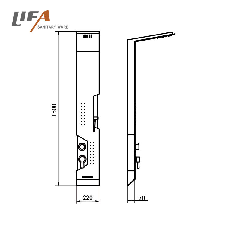 Product NameAluminum alloy shower panelModel NumberCF-9059Size1500*220*70mmMaterialAluminum alloyHead showerConcealed plastic head shower, rainfall , 50pcs nozzles Hand showerSingle function plastic hand showerMassage jetsConcealed Plastic massa...