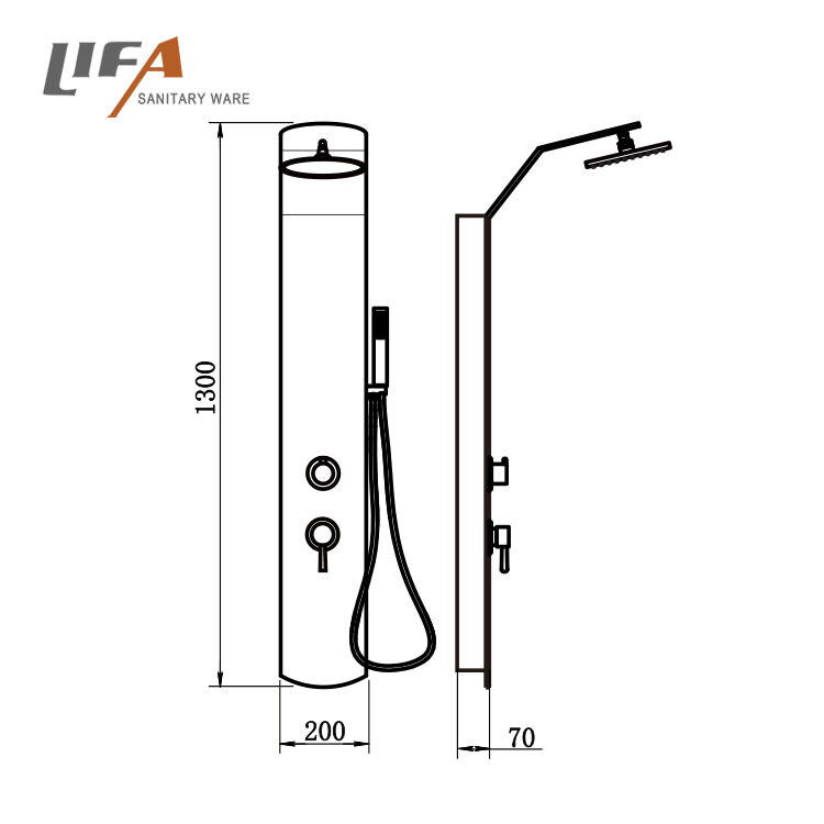 Product NameAluminum alloy shower panelModel NumberCF-9233Size1300*200*70mmMaterialAluminum alloyHead showerPlastic head shower, rainfall Hand showerSingle function plastic hand showerWarranty2 year