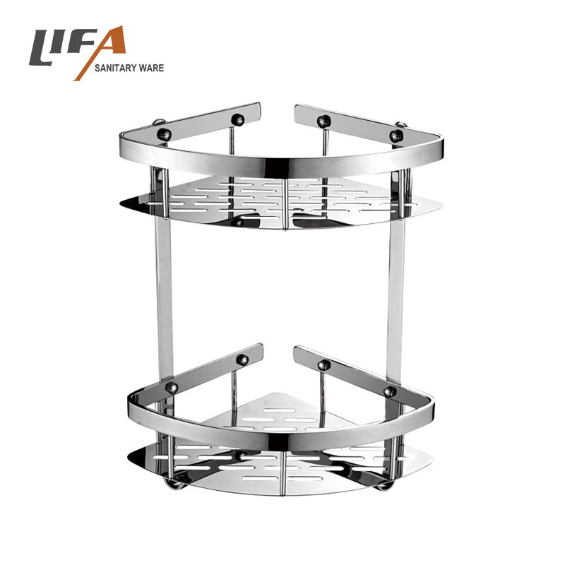 Model D1030 商品名 バスルームコーナーシェルフ 材料 ステンレス鋼 色 シルバー サイズ 285x215x50mm 表面仕上げ クロムメッキプロセス 取り付け 壁掛けタイプ