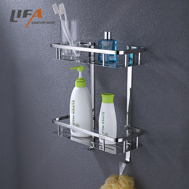 モデル D2002 製品名 バスルームコーナーシェルフ 材料 ステンレス鋼 色 シルバー サイズ 320x135x380mm 表面仕上げ クロムメッキプロセス 取り付け 壁掛けタイプ
