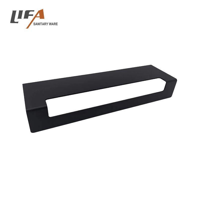 モデル SF-05 製品名 バスルームシェルフ 材質 ステンレススチール カラー ブラック サイズ 400x120x60mm 表面仕上げ ブラシ仕上げ 取り付け 壁掛けタイプ