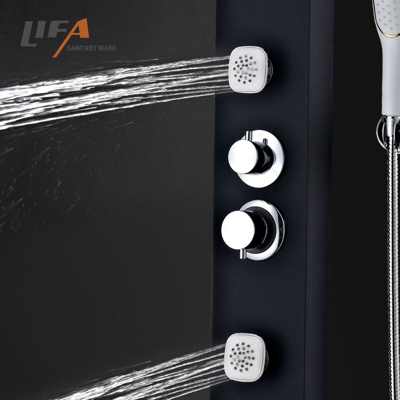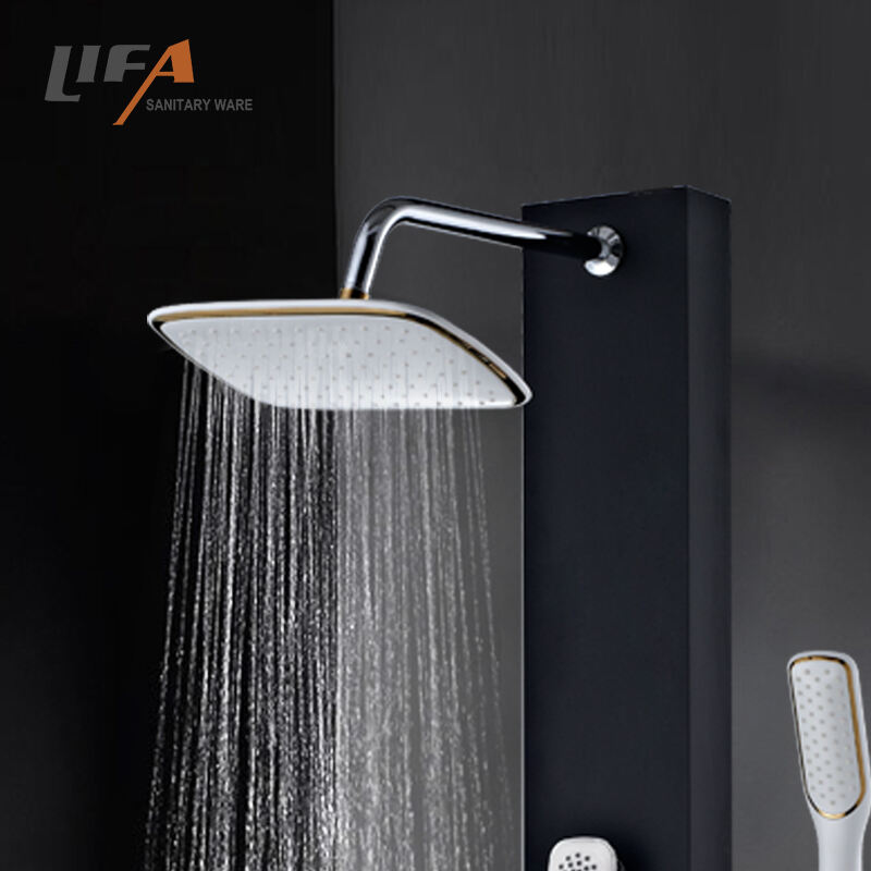 高品質でモダンなPVC製ブラックボディ壁掛け式バスルームマッサージシャワーパネル CF-7115