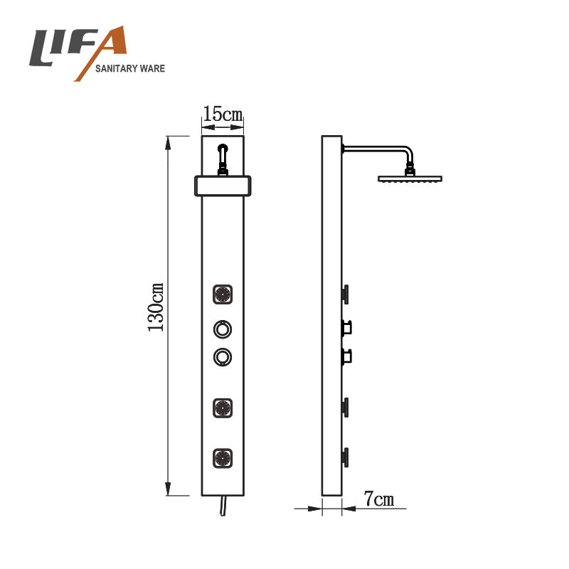 良質な現代のPVC、黒いボディ、壁取り付け型バスルームマッサージシャワーパネルCF-7115モデルCF-7115素材PVCシャワーパネルヘッドシャワークロムプラスチックヘッドシャワーハンドシャワー単機能クロムプラスチックハンドシャワーシャワーホルダークロム仕上げ、プラスチックシャワーホルダーマッサージジェットクロム仕上げ、プラスチックマッサージジェットカートリッジ真鍮ボディセラミックプレート寿命:500000回ハンドルダイバター用1つ、ミキサー用1つ、クロム亜鉛編組ホース304#ステンレス鋼ワイヤー編組ホースシャワーホースステンレス鋼ダブルロックホース、1.5M取り付けキットステンレス鋼吊り具