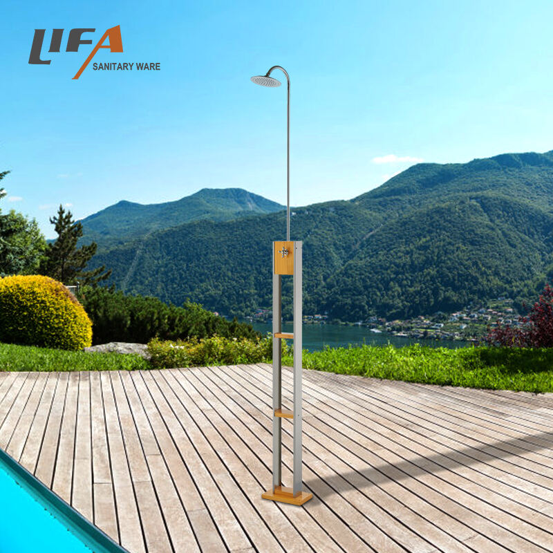 ビーチ用新デザイン木製ステンレススチールレインフォール多機能屋外シャワーパネル CF-5014