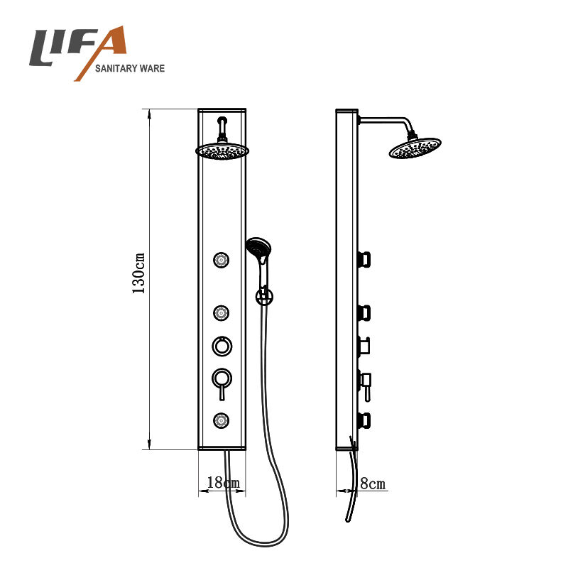 新しいリスト防水モダン多機能PVC壁シャワーパネルジェット付きCF-7006モデルCF-7006素材PVCシャワーパネルヘッドシャワークロムプラスチックヘッドシャワー手シャワー多機能クロムプラスチック手シャワーシャワーホルダークロム仕上げ、プラスチックシャワーホルダーマッサージジェットクロム仕上げ、プラスチックマッサージジェットカートリッジ真鍮ボディセラミックプレート寿命:500000回ハンドルダイバター用1つ、ミキサー用1つ、クロム亜鉛編組ホース304#ステンレス鋼ワイヤー編組ホースシャワーホースステンレス鋼ダブルロックホース、1.5M取り付けキットステンレス鋼吊り具