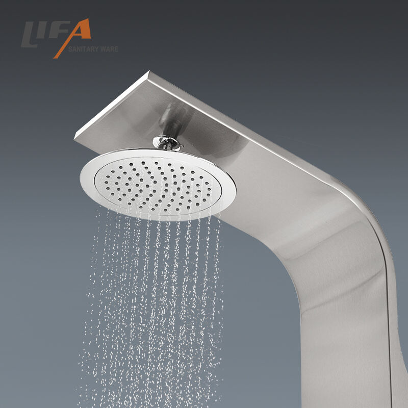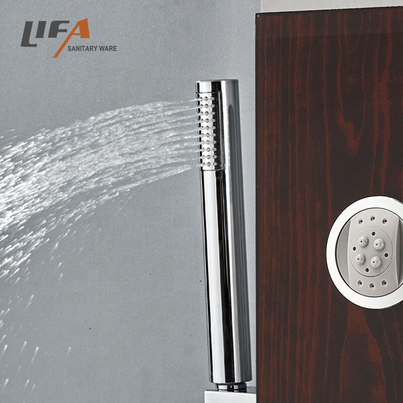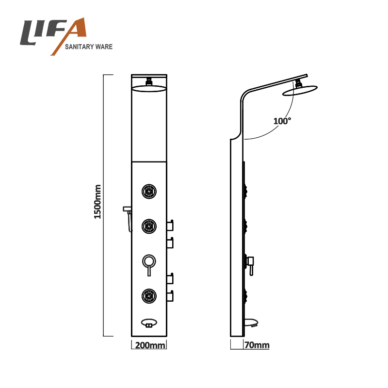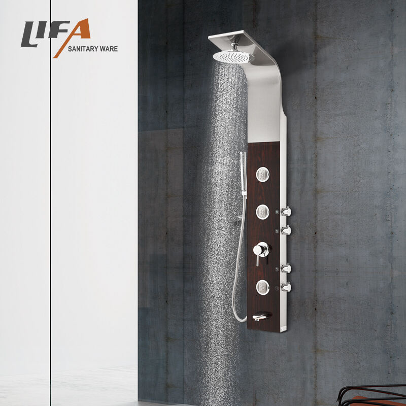 Morden Black Glass Massage Bathroom Shower Panel Stainless Steel shower Set CF-8029Product NameStainless steel & tempered glass shower panelModel NumberCF-8029Size1500*200*70mmMaterialStainless steel+ safety tempered glass Head showerplastic head shower, rainfallHand showerSingle function chrome plastic hand showerShower holderChrome finished, plastic shower holderMassage jetsChrome finished, plastic massage jetsWarranty2 year