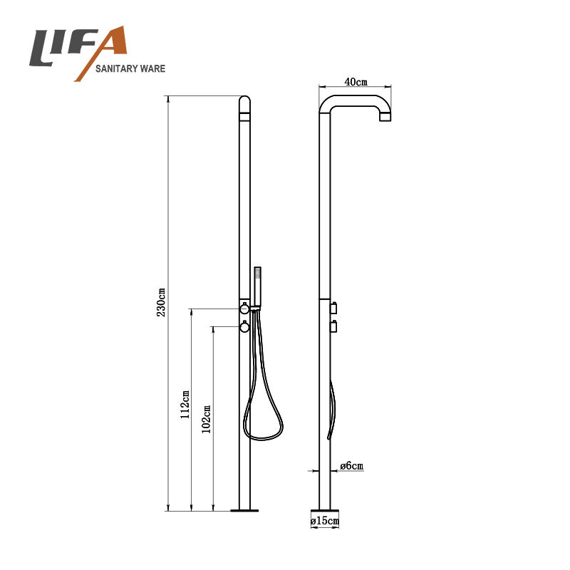 Most Popular Outdoor Free Standing Portable Shower Panel Stainless Steel Shower Column For Beach CF-5303Product NameSS outdoor shower columnModel NumberCF-5303Sizeφ60*2300mmMaterialStainless steelFunctionShowerFeatureFloor Stand FaucetsApplicationBathroom, outdoor poolDesign StyleModernWarranty2 year