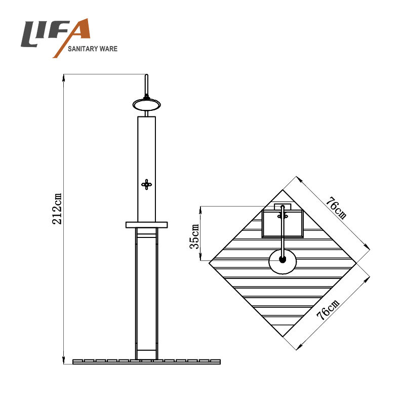 New design outdoor beach shower wooden shower tray outdoor shower panel for pool CF-5009Product NameWood outdoor shower panelModel NumberCF-5009Size760*760*2120mmMaterialWoodFunctionShowerFeatureFloor Stand FaucetsApplicationBathroom, outdoor poolDesign StyleModernWarranty2 year