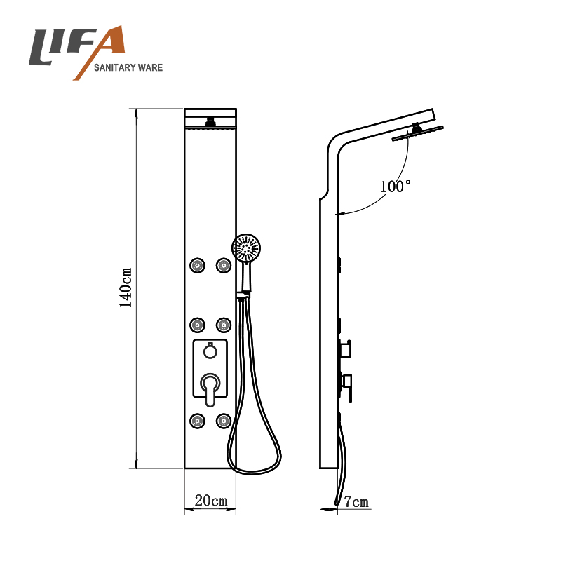 New Design Natural Bamboo Shower Panel Bathroom Wooden Shower Panel CF-5106Product NameBamboo shower panelModel NumberCF-5106Size1400*200*70mmMaterialBambooHead showerplastic head shower, rainfallHand showerMultifunctional chrome plastic hand showerShower holderChrome finished, plastic shower holderMassage jetsChrome finished, plastic massage jetsWarranty2 year