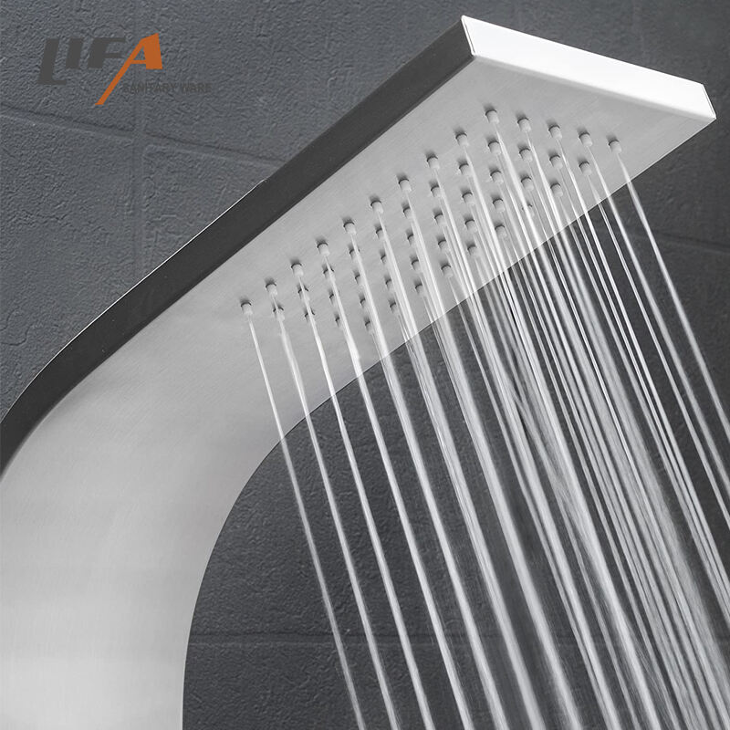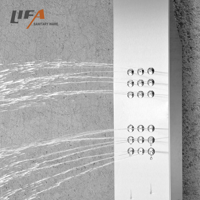 New design outdoor swimming pool shower panel stainless steel outdoor shower column CF-5022Product Name SS outdoor shower panelModel NumberCF-5022Size150*65*2100mmMaterialStainless steelFunctionShowerFeatureFloor Stand FaucetsApplicationBathroom, outdoor poolDesign StyleModernWarranty2 year