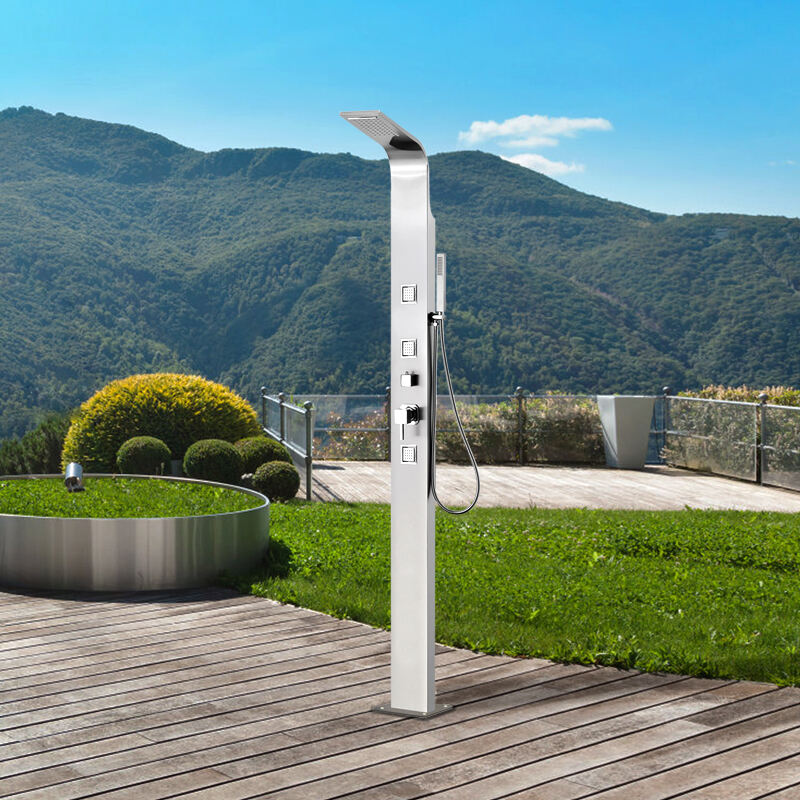 New design stainless steel outdoor swimming pool shower panel for beach and gardenCF-5018Product NameSS outdoor shower panelModel NumberCF-5018Size150*65*2100mmMaterialStainless steelFunctionShowerFeatureFloor Stand FaucetsApplicationBathroom, outdoor poolDesign StyleModernWarranty2 year