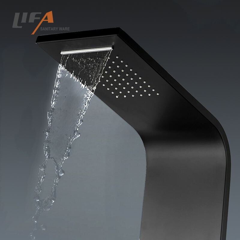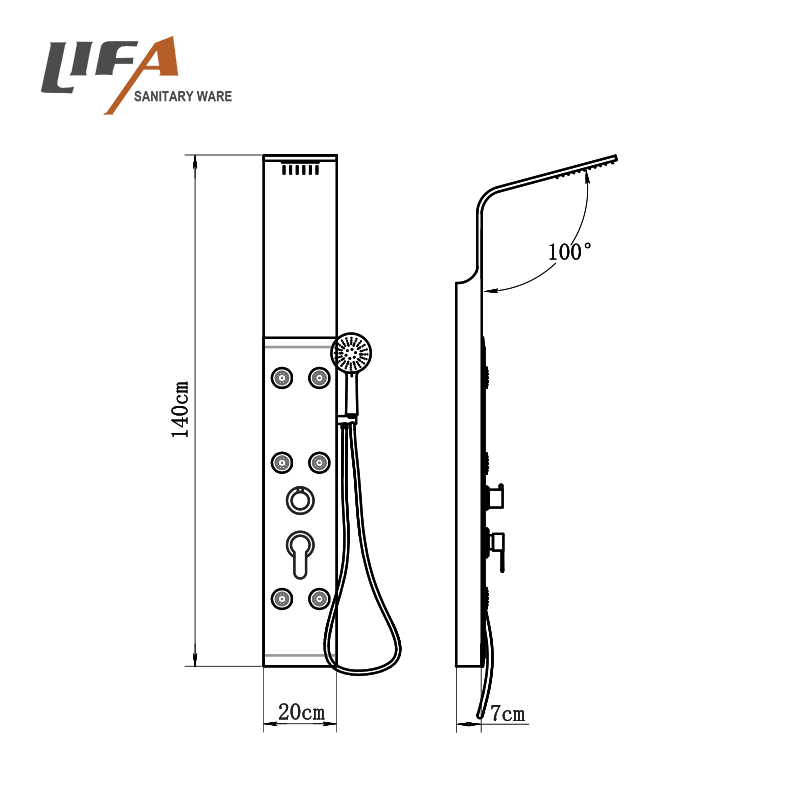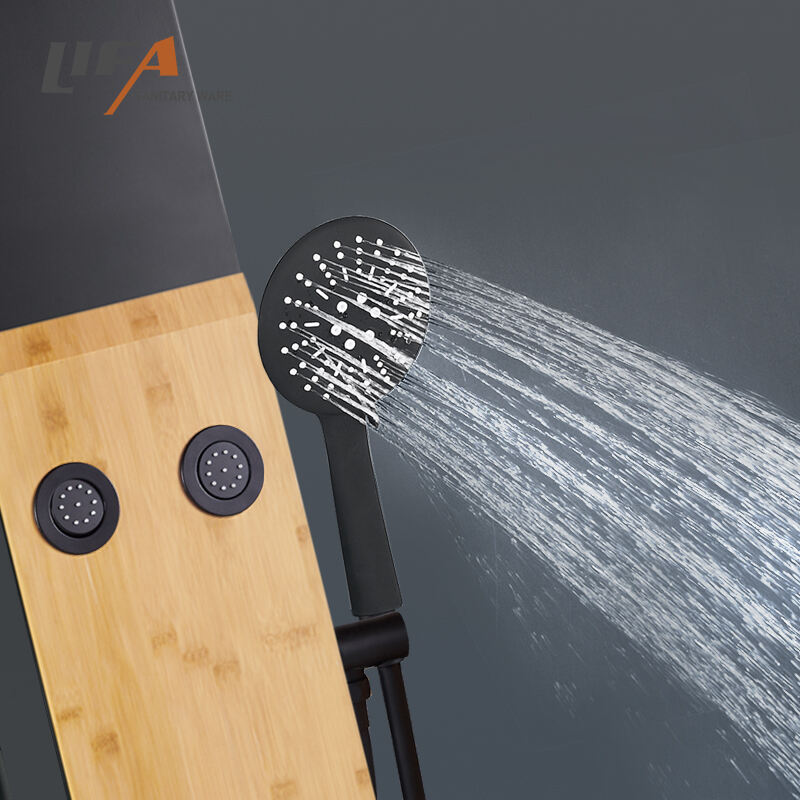 New Design Wall Mounted Bamboo Shower Column shower tower Wood shower panel CF-5104Product NameBamboo & aluminum shower panelModel NumberCF-5104Size1400*200*70mmMaterialBamboo & aluminumHead showerplastic head shower, waterfall, rainfallHand showerMultifunctional chrome plastic hand showerShower holderChrome finished, plastic shower holderMassage jetsChrome finished, plastic massage jetsWarranty2 year