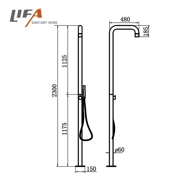 Product NameOutdoor shower columnModel NumberCF5308-2Sizeø60x2300mmMaterialStainless steel ColorBrush FinishedFunctionRainfall, Hand showerNumber of handlesSingle HandleFeatureFloor Stand FaucetsApplicationBathroom, outdoor poolWarranty2 ...