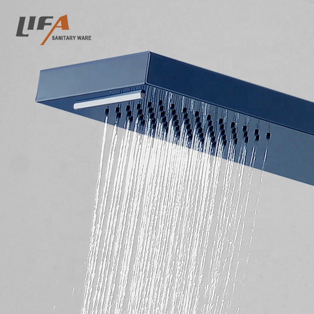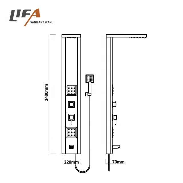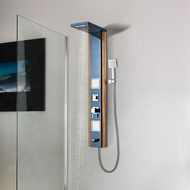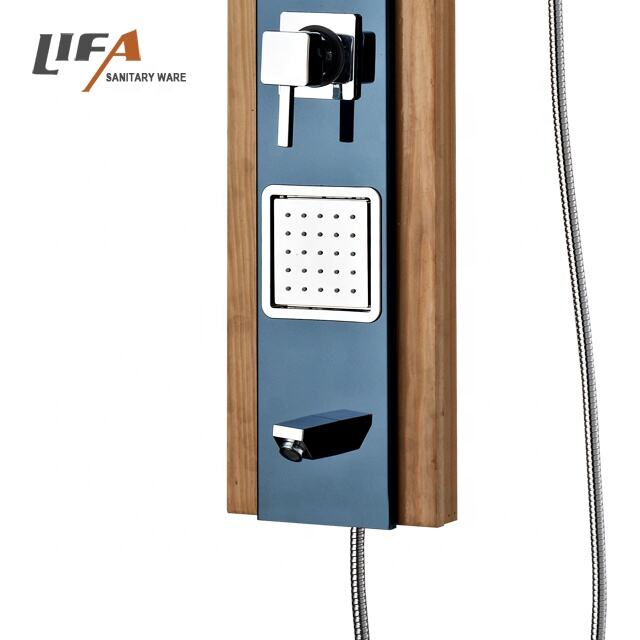 popular design chrome surface stainless steel bathroom fitting shower panel CF-8327 MaterialStainless steel shower panelHead showerrainlfall, 5*10 nozzles & waterfallHand showerSingle function chrome plastic hand showerHolderChrome finished, plastic shower holderMassage jetsChrome finished, plastic massage jetsSpoutChrome finished, plastic spoutHandlesOne for diverter, one for mixer, chrome zincWoven hose304# stainless steel wire woven hoseShower hoseStainless steel double-lock hose, 1.5MCartridgeBrass body ceramic plate