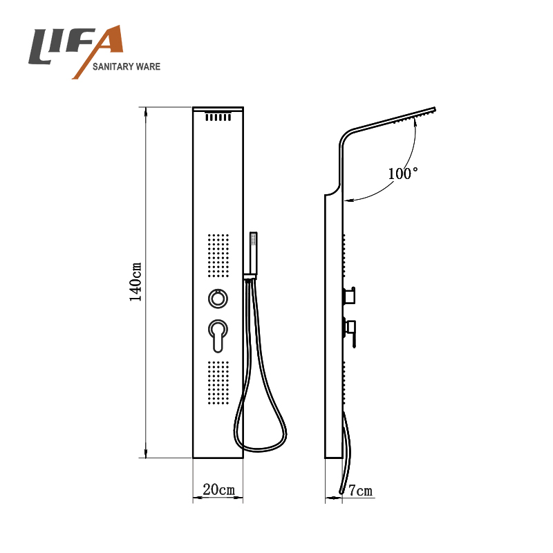 Quality home sanitary system spraying massage with jets shower panel aluminum alloy shower CF-9051Product NameAluminum alloy shower panelModel NumberCF-9051Size1400*200*70mmMaterialAluminum alloyHead showerplastic head shower, waterfall, rainfallHand showerSingle function chrome plastic hand showerShower holderChrome finished, plastic shower holderMassage jetsChrome finished, plastic massage jetsWarranty2 year