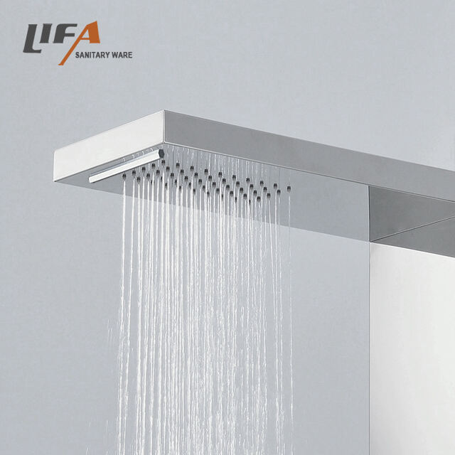 Самостоятельные водоотталкивающие панели из древесины, наружная душевая панель из нержавеющей стали CF-5012МатериалНаружная душевая панель из нержавеющей стали, ДУШЕВАЯ КОЛОНКА Дождь, 5*10 насадок & водопадРучной душОдна функция хромированного пластикового ручного душаДержательХромированный, пластиковый держатель для душаМассажные струиХромированные, пластиковые массажные струиСпособХромированный, пластиковый способРукояткиОдна для переключателя, одна для смесителя, хромированный цинкТканый шлангТканый шланг из проволоки из нержавеющей стали 304#Душевой шлангНержавеющий двойной замок шланг, 1.5MКартриджМедный корпус керамическая пластина