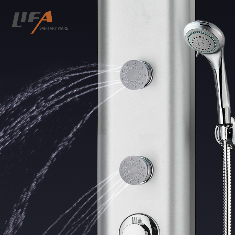 The New Listing Waterproof Modern Multi-Function Pvc Wall Shower Panel With JetsCF-7006ModelCF-7006MaterialPVC shower panelHead showerChrome plastic head showerHand showerMultifunctional chrome plastic hand showerShower holderChrome finished, plastic shower holderMassage jetsChrome finished, plastic massage jetsCartridgeBrass body ceramic plate LIFE: 500000 timesHandlesOne for diverter, one for mixer, chrome zincWoven hose304# stainless steel wire woven hoseShower hoseStainless steel double-lock hose, 1.5MMounting kitsStainless steel hanging pieces