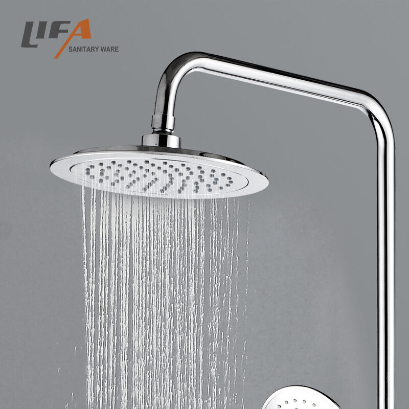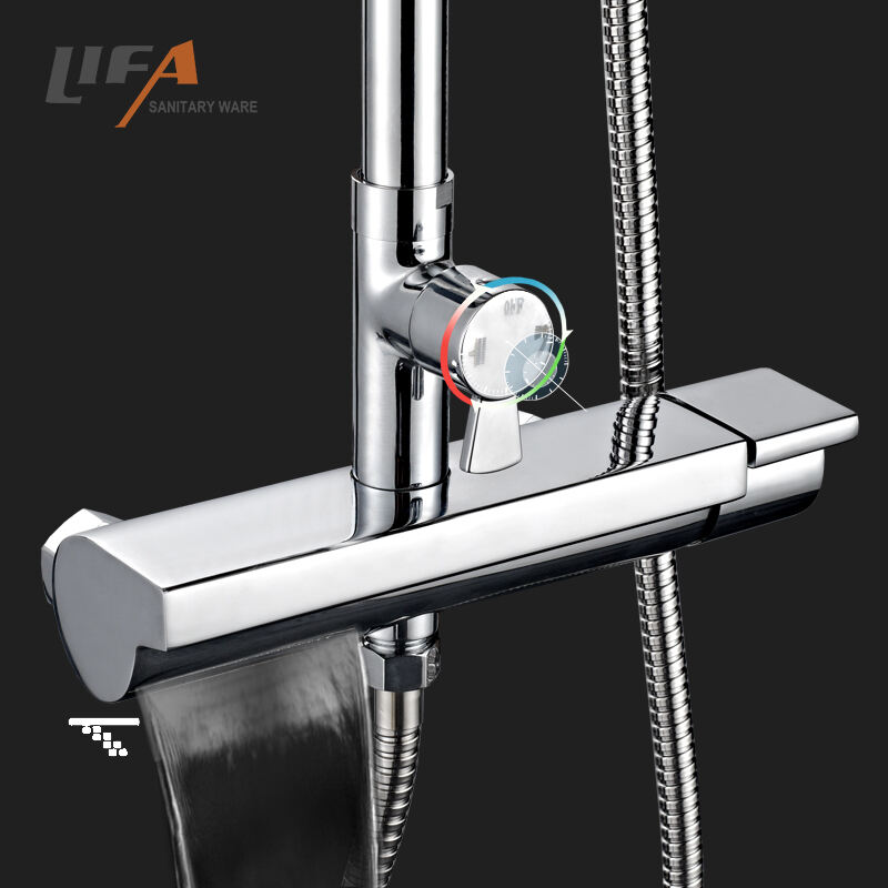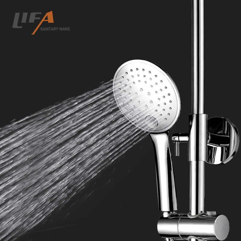 Wall mounted bathroom rain waterfall stainless steel shower columnCF-3057 ModelCF-3057Material for main bodyChrome stainless steel pipeHead showerChrome plastic head shower , φ20cmShower armChrome stainless steel shower arm for head showerHand showerThree function plastic hand showerShower holderChrome ABS sliding hand shower supportHose for showerStainless steel double-lock hose, EPDM inner hose, 1.5M